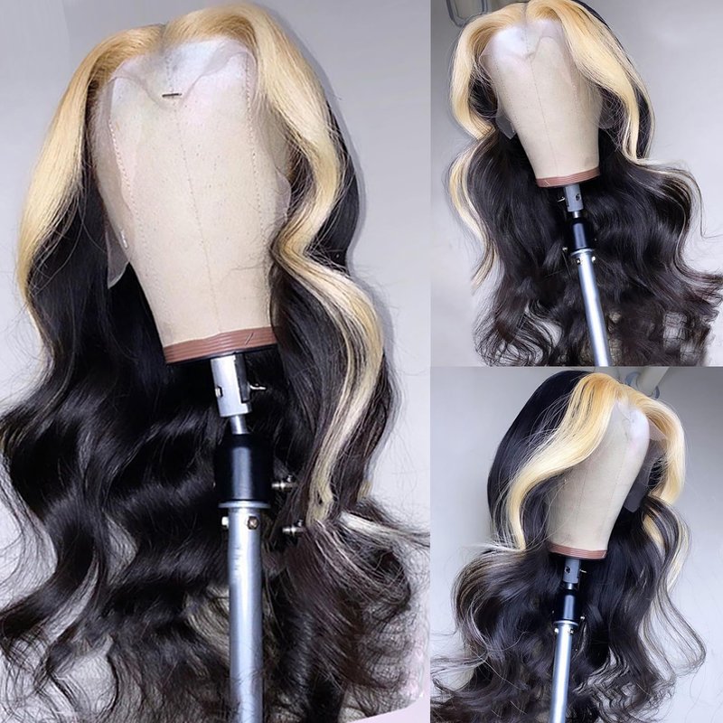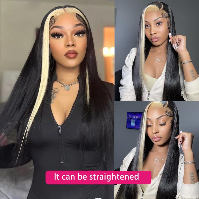 - Real 613 human hair Skunk Stripe:100% 12A 613 human hair and natural black hair,can be dyed any color;Unique design can make middle part and side part freely;Pre plucked with baby hair do not need too much work