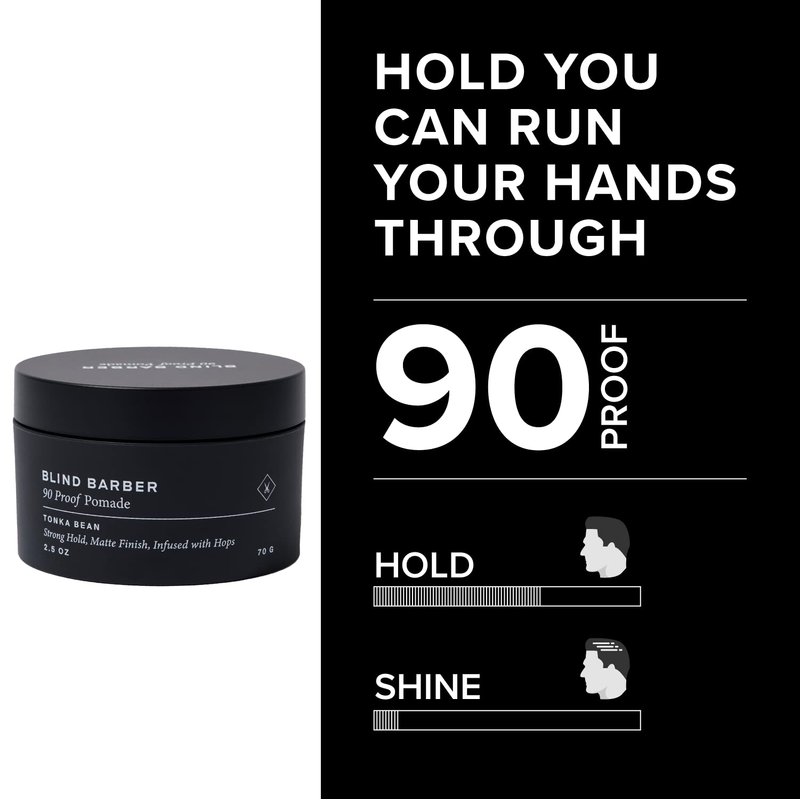 Blind Barber 90 Proof Hair Pomade for Men - Strong Hold, Natural Finish - Water-Based Pomade for Men with Hops & Tonka Bean - Free of Greasy Oils, Easy to Use Matte Pomade - (2.5 Oz)