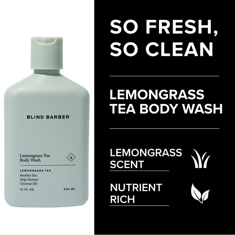 Blind Barber Lemongrass Tea Body Wash - Daily Sulfate-Free Body Wash for Men with Lemongrass Scent - Leaves Skin Clean & Hydrated - Paraben-Free, Cruelty-Free, No Artificial Dyes (12oz / 350ml)