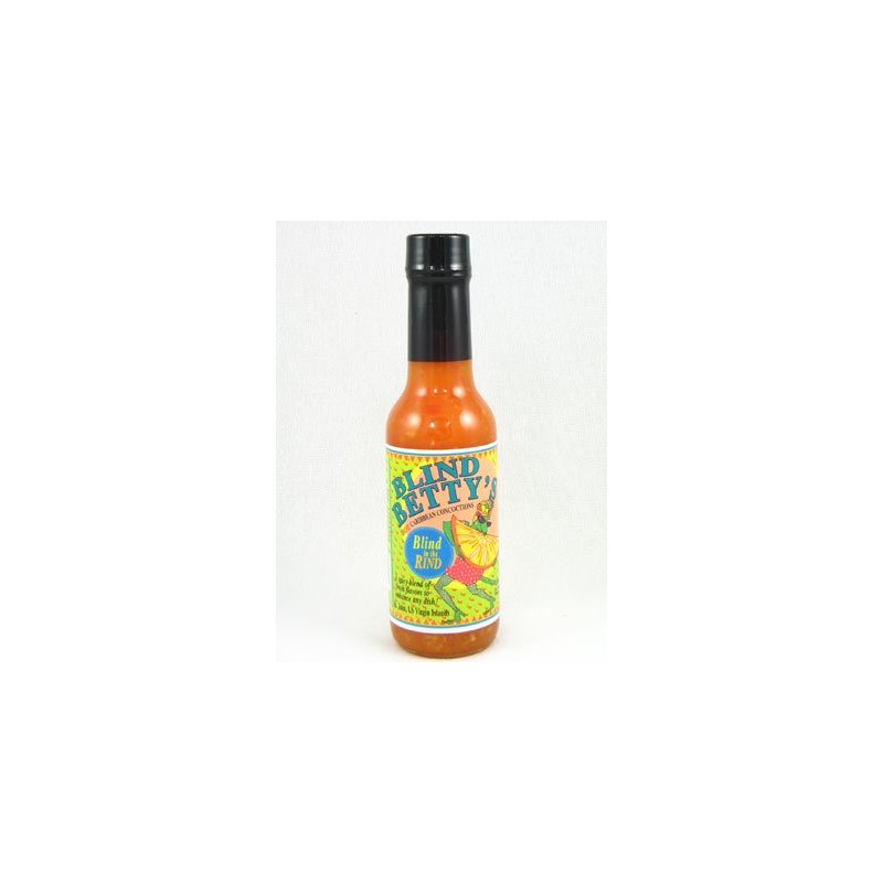 A spicy blend of fresh flavors to enhance any dish. Betty's citrus concoction has a tangy orange and lemon flavor. The taste of sun-ripened fruit combined with red habanero peppers are guaranteed to bring the caribbean right into your favorite recipes. Blind Betty makes Blind in the Rind Hot Sauce 100 percent pure tropical sunshine in a bottle. Ingredients: Orange Juice, Water, Sugar, Vinegar, Oranges, Lemon Juice, Habanero Pepper, Red Bell Pepper, Salt, and Xanthan Gum