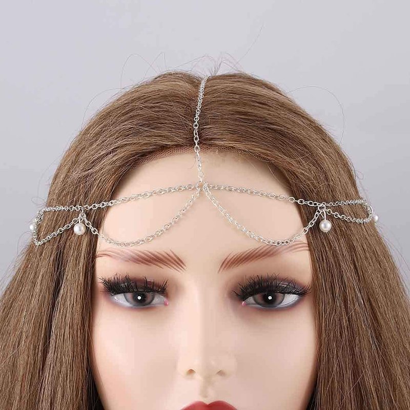 Blindery Boho Head Chain Pearl Head Jewelry Silver Headpiece Layered Hair Chain Wedding Festival Hair Accessories for Women and Girls