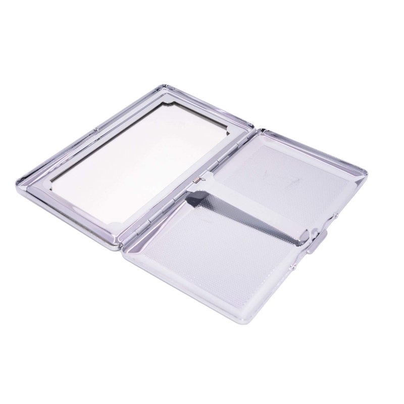 - CRUSH PROOF: This cigarette case features a clip to secure your cigarettes and other smoking accessories. Extra sturdy hinges and a release button on the front ensure that your contents will remain safe and never get crushed. ITEM SIZE: Measuring 3” x 5” x 1/4”, this case can accommodate 120s & 100s. Holds 6-9 cigarettes.