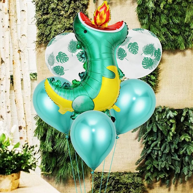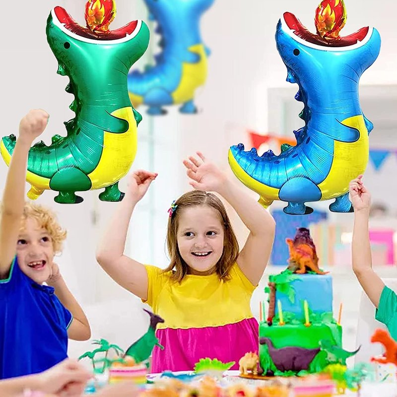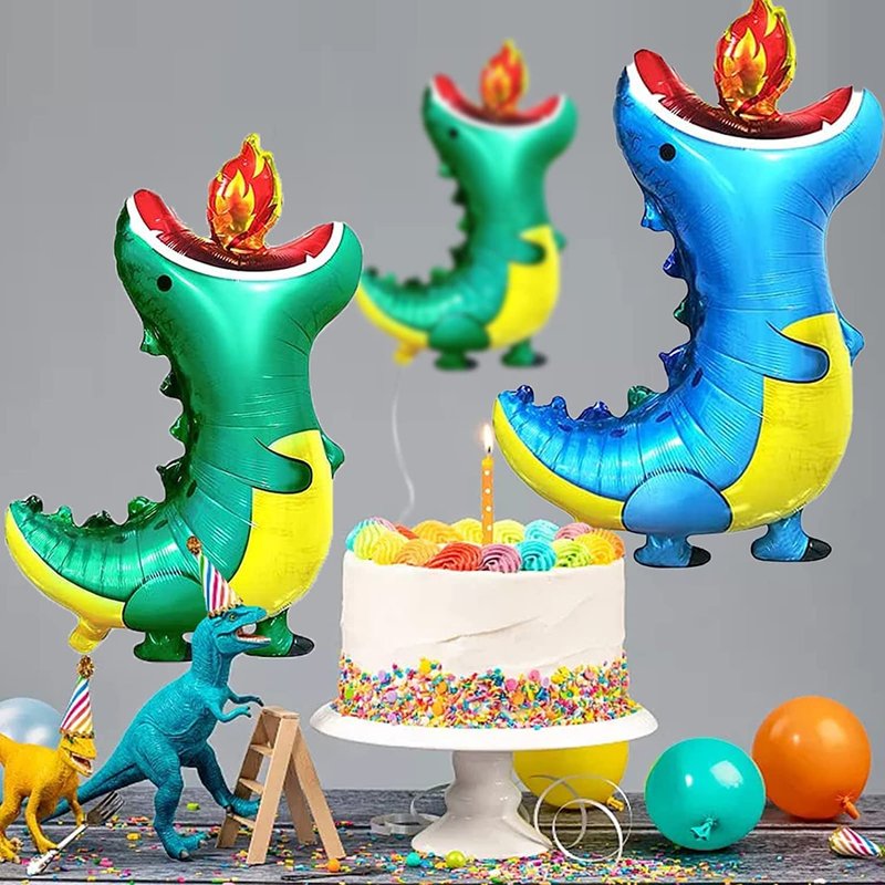 Package Including : 4Pcs Dinosaur foil balloons(2PCS Green Fire Breathing Dinosaur Foil Balloons and 2PCS Blue Fire Breathing Dinosaur Foil Balloons)