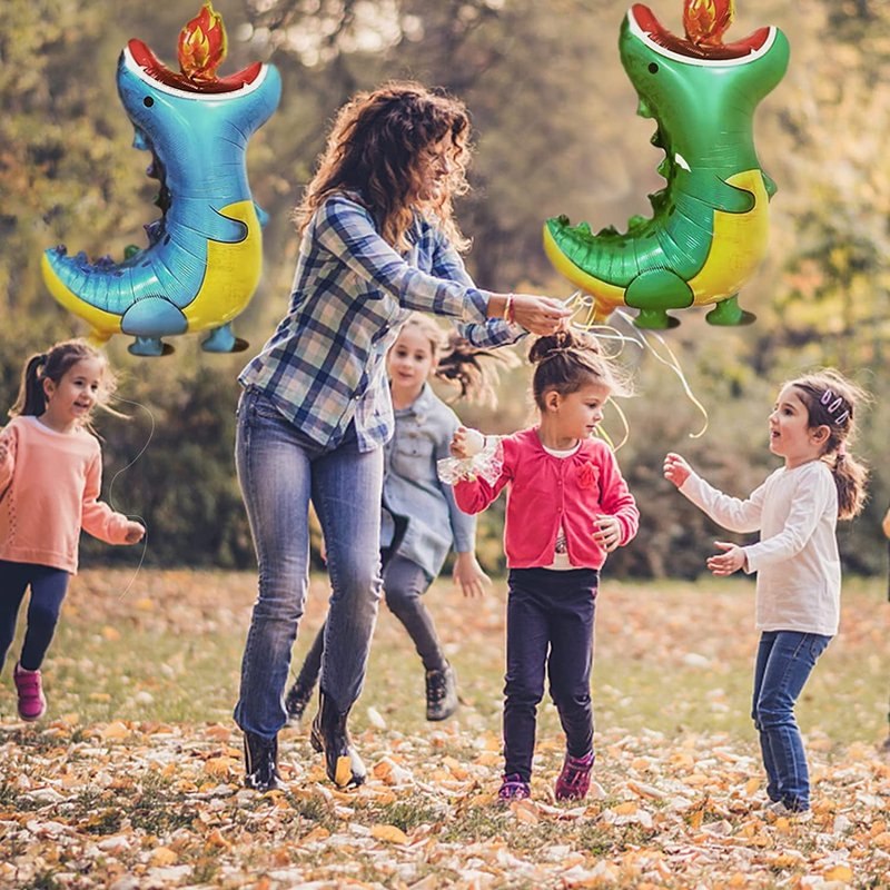 - 【Easy to Use】-It is easy to inflate or deflate these dinosaur foil balloons, the inflation port is flattened and the air outlet will be automatically sealed after being inflated. It can be filled with air or helium.