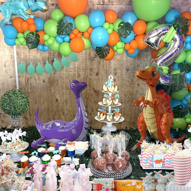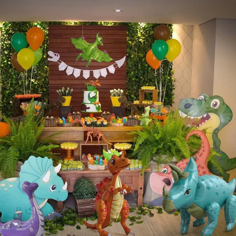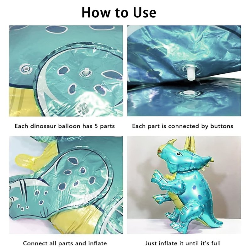 BlingABC 4Pack Giant 3D Dinosaur Balloons Standing Inflatable Dino Aluminium Foil Balloons Decoration for Kids Birthday Baby Shower Jungle Party Supplies