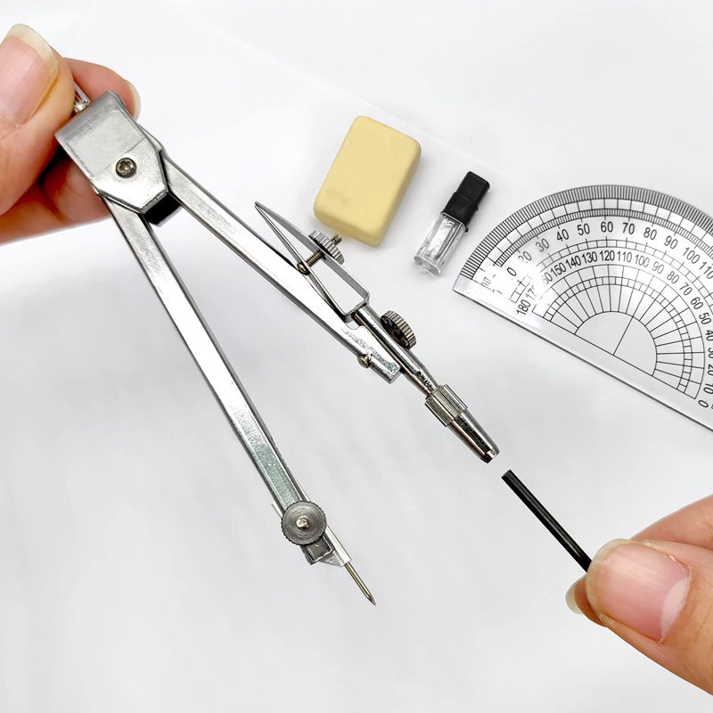 2.Silver metal compass, which remains solid and reliable without slipping or expanding during use, guaranteeing smooth and accurate circles; lead refills with a diameter of 2mm, providing an ample supply for your drawing needs; eraser for correcting any mistakes; protractor for measuring angles with ease.