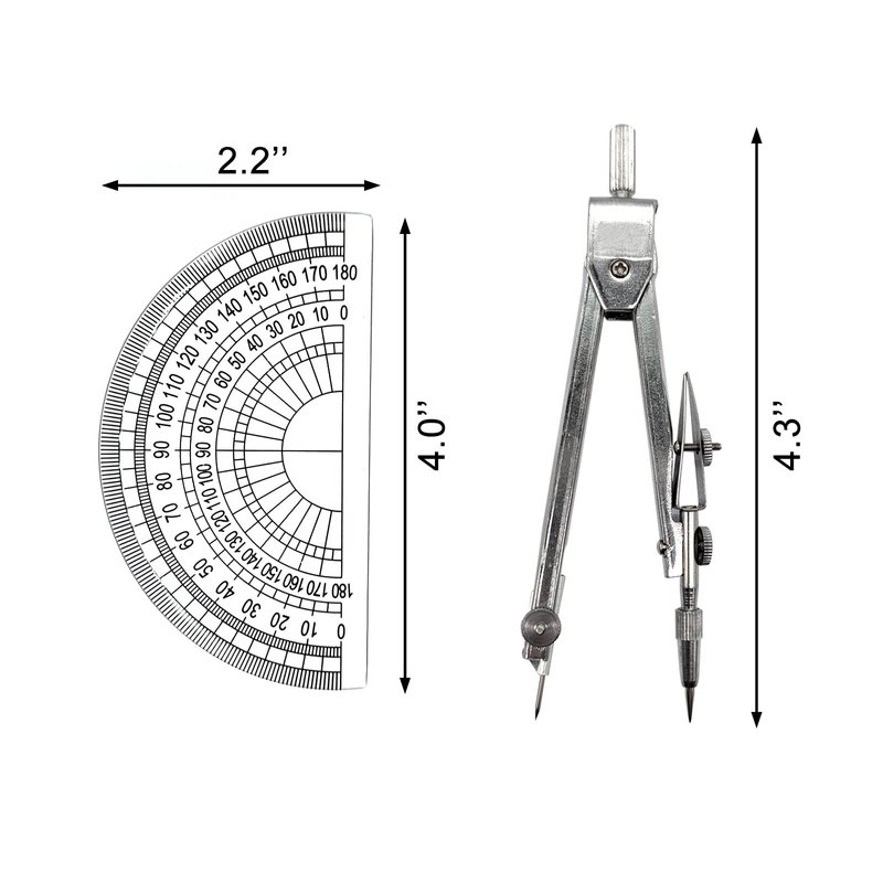 - Durable material: The compass is made of stainless steel, which is anti-corrosion; the protractor is made of safe plastic, the transparent design is easy to measure and read.