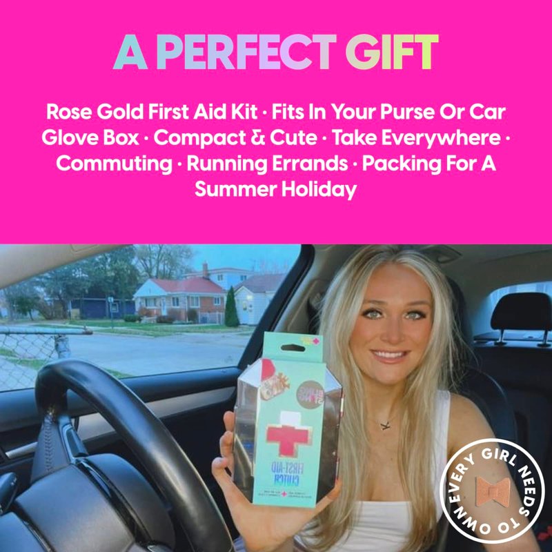 ⛑Evereything A Girl Needs in a Safety Kit - Being prepared doesn't mean being boring! Face any blister, bump or mishap with style. Blingsting's supercute emergency preparedness kit in a rose gold gemstone inspired hard case. Pretty perfect for college dorms, tote bags, gym bags, over-night bags, backpacks or purses. Small and lightweight with all the 75 medical essentials: 6 - antiseptic cleansing wipes 6 - sting relief pads 6 - alcohol pads 10 - safety pins 18 - cotton swabs 10 - fabric bandages 5 - knuckle bandages 5 - finger bandages 2 - butterfly bandages 5 - gauze pads 1 - gauze tape 1 - super cute little travel case. Perfect gifts for students and adults. Doubles as a beauty storage box, with a sparkly and girly design. Could be a small portable toiletry organizer for a road trip! A makeup brush, jewelry, and lipstick holder every girl will love! Great for cosmetic organization while traveling.