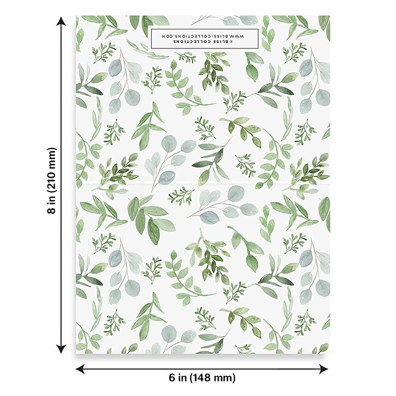 There are all kinds of occasions to reach out to friends, family and acquaintances! Send a special note of thanks, gratitude, sympathy or “just thinking of you” whenever the notion catches you with these beautiful 4x6 folded thank you cards (envelopes included!) 4 different greenery designs allow you to choose the one that most fits the occasion. PRODUCT DETAILS: - 24 Pack (24 thank you cards + 24 envelopes included) - 4” x 6” (folded), 8” x 6” (unfolded) - the generous size allows plenty of room for you to write - Printed on high quality 100lb heavyweight, uncoated white card stock - Folded thank you cards feature 4 modern greenery designs (6 cards in each design) - A4 (4 ¼ x 6 ¼) Envelopes included! WHAT MAKES US UNIQUE: - 100% UNIQUE DESIGNS: Created by our in-house design team — you won't find these designs anywhere else! - HIGH QUALITY PAPER: Every product uses the finest quality papers and materials. - OPTIMAL ENVIRONMENTAL CHOICE: Uncoated stock is acid-free and contains 10% post-consumer recycled content. - WE STAND BEHIND OUR PRODUCTS: We take pride in the quality and creativity of our designs so you will be proud to own it! - KNOW YOU’RE SUPPORTING A SMALL, FAMILY-OWNED BUSINESS: Not a franchise or a chain, we are a husband and wife company of two, established in 2012. - USA MADE: Designed and printed in the USA.