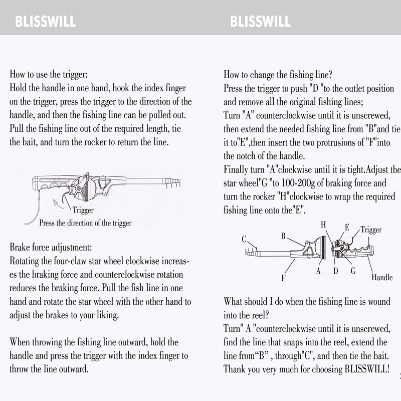 - HOW TO USE THE LINE? One hand to hold the handle, the index finger force the trigger, the line will be in a free condition. Another hand pull the line in the reel , the line can be pulled out. YOU WON'T FIND THIS KIND OF VALUE ANYWHERE ELSE.
