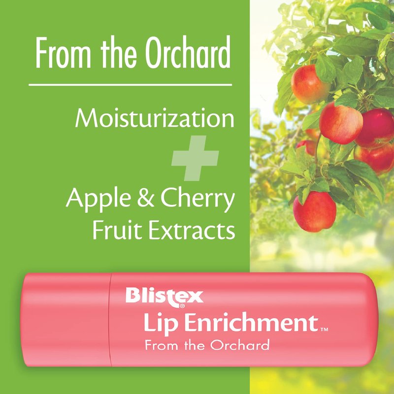 Moisturizes with fruit extracts from the vine & orchard. New! Vitamin E & botanical oils for healthy hydration. Lip Enrichment balms moisturize and revitalize with fruit extracts from vine and orchard-grown sources to enrich and hydrate lips. They bring the best of vine and orchard for beautifully nourished and healthy lips.Botanical Oils: Infused with grape seed, jojoba & coconut oils - known to contain essential fatty acids - for a rich and creamy blend that provides intense moisturization and a great feeling. From the Vine: Smooths and nourishes lips with vitamin E plus Grape and Kiwi fruit extracts, which are known to contain antioxidants. This delicious fruit flavored balm leaves lips soft and looking healthy. From the Orchard: Helps hydrate and rejuvenate the appearance of lips with vitamin E plus Cherry and Apple fruit extracts, which are known to contain antioxidants. This enriching balm has the great taste of cherry and apple. Satisfaction guaranteed. Card is 100% recyclable.