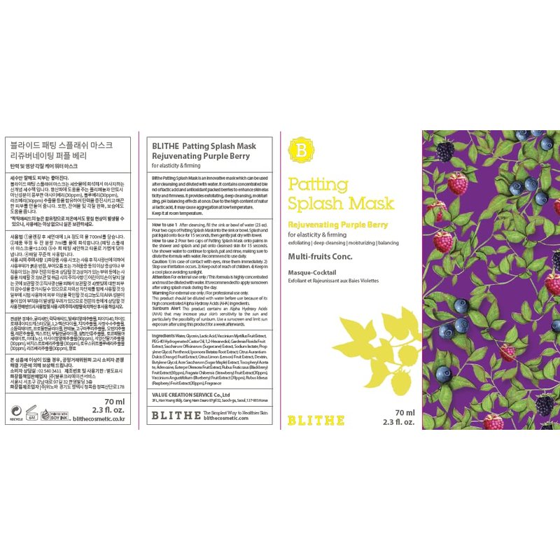 - VEGAN KOREAN BEAUTY: Purple Berry Mask is suitable for people with fatigued lifeless skin that needs energy & hydration. Join the latest Clean Beauty trend and get your BLITHE AHA exfoliating face wash today!