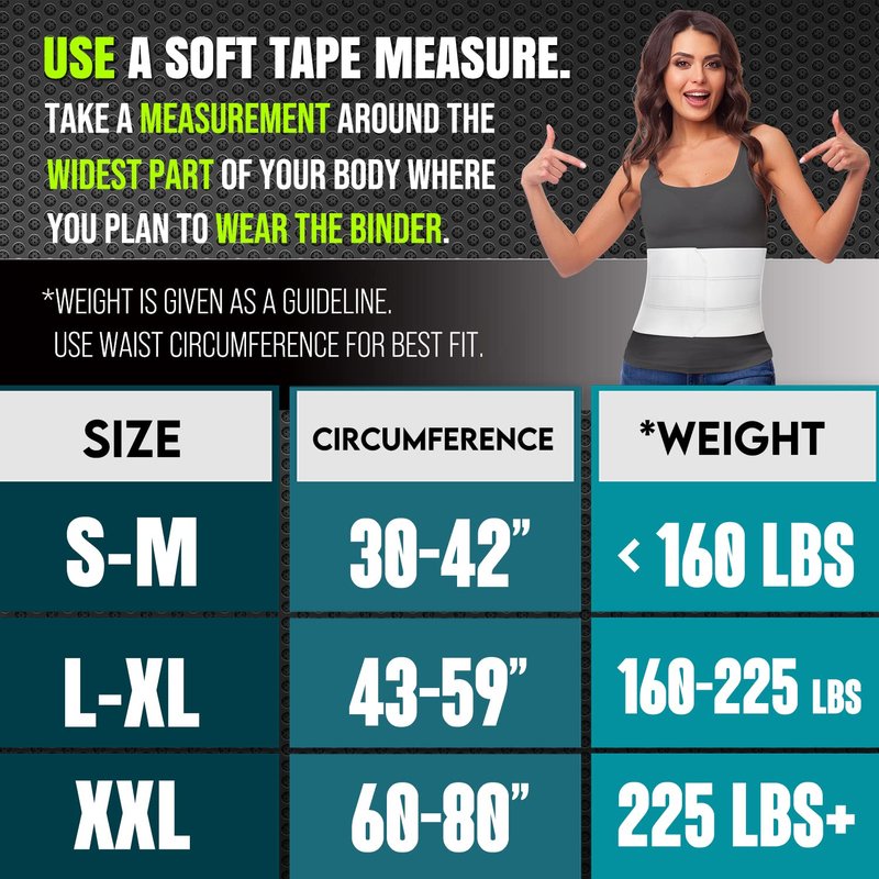 - Smoothes & Shapes Waistline - We have designed our abdominal wrap with hemstitched panels to conform to your body shape, making it comfortable to wear while sitting, standing, and lying down. This belly binder features contoured stitching that prevents it from rolling up or bunching up. Furthermore, this compression bandage helps to hold your stomach in place, shrink, flatten, and hide the appearance of loose, sagging skin after major weight loss. This belly wrap will boost your confidence.