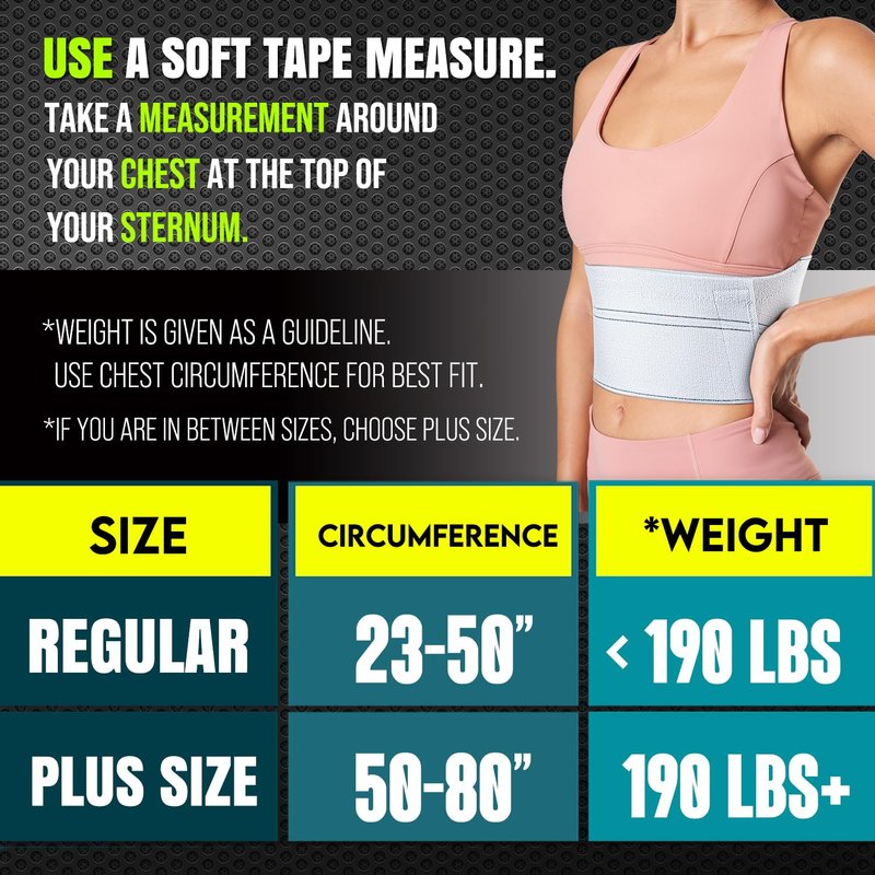 - The gentle support and compression helps to increase blood flow, allowing your chest muscles or ribs to heal more rapidly. Allow you to go about your busy day with less pain and more confidence. Fits both men and women.