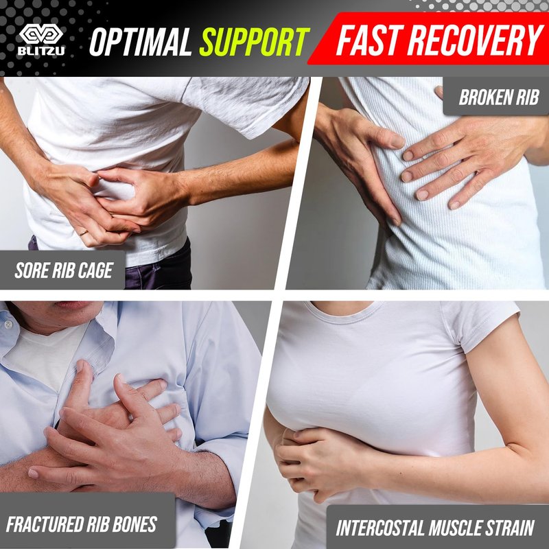 BLITZU Broken Rib Brace Chest Binder & Wrap Belt for Post-Surgery, Cracked, Fractured, Dislocated Ribs, Pain and Strain Treatment. Rib Cage Protection, Compression and Support. Regular Size
