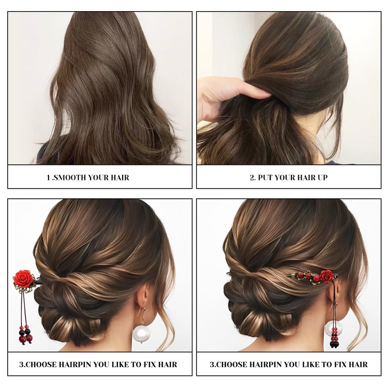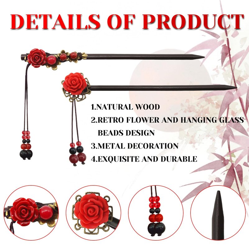 - Retro Style: Our retro chopsticks for hair are designed in simple and elegant style, with retro red flowers and glass beads tassels, easy to design retro hairstyle, making you more elegant and stand out from the crowd.