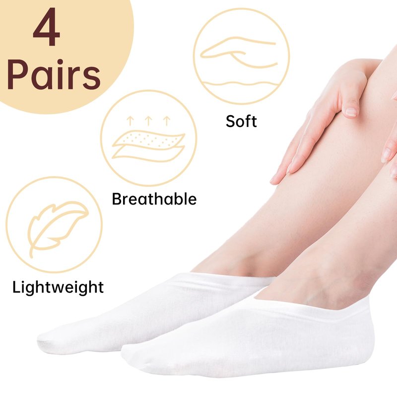 - 【Package Included】You'll receive 4 pairs of moisturizing socks in white color, which are elastic and fit most people's feet. The socks are machine washable, durable and reusable, which is enough for your spare and replacement.