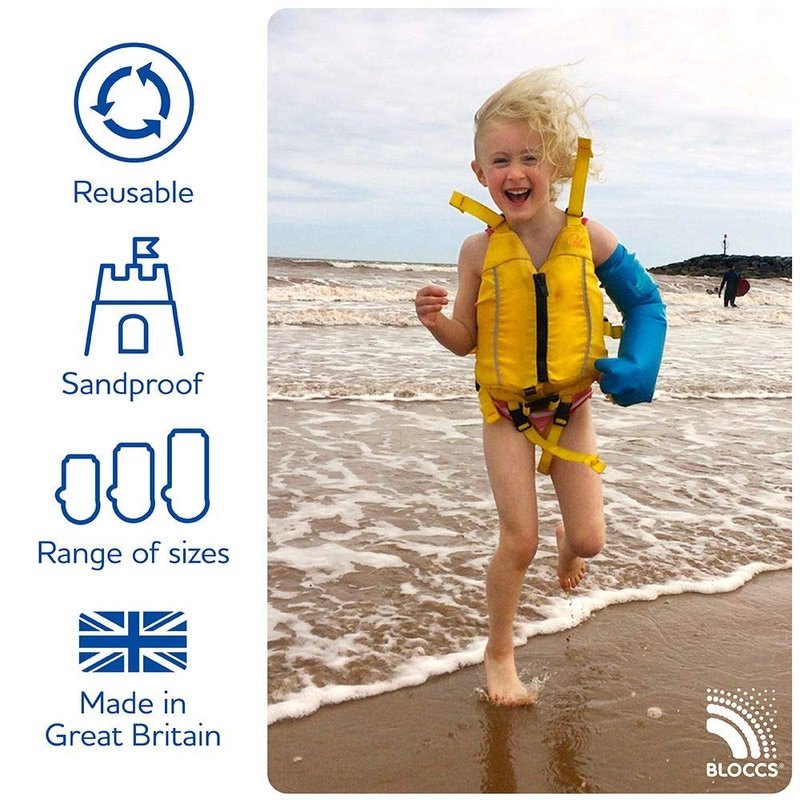 - EASY TO USE: The Bloccs Child Arm Cover Medium is easy to put on and take off, providing a hassle-free experience. Simply slide the sleeve over the cast to create a watertight seal around the arm.