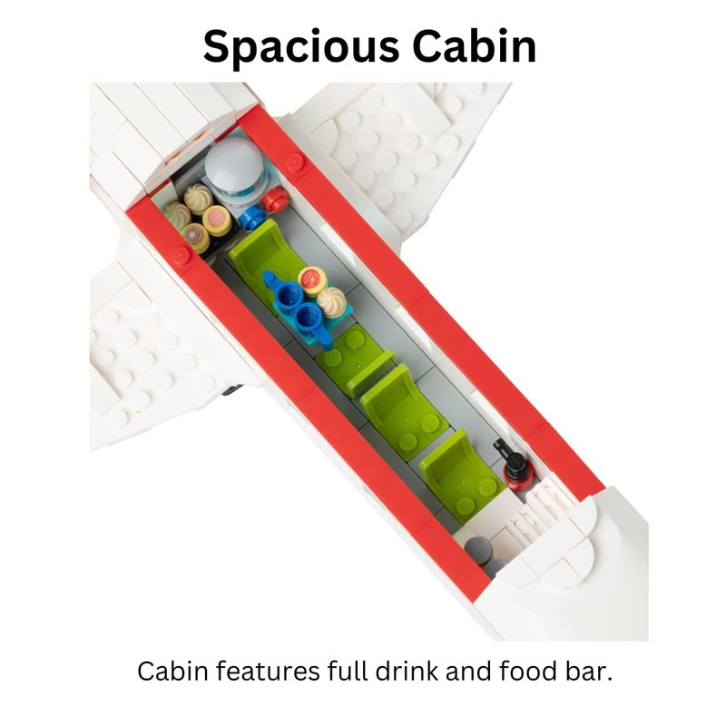 - This airplane kit includes realistic details such as cockpit, passenger cabin with drink and food bar, baggage carrier, and cargo hold to fit all the luggage