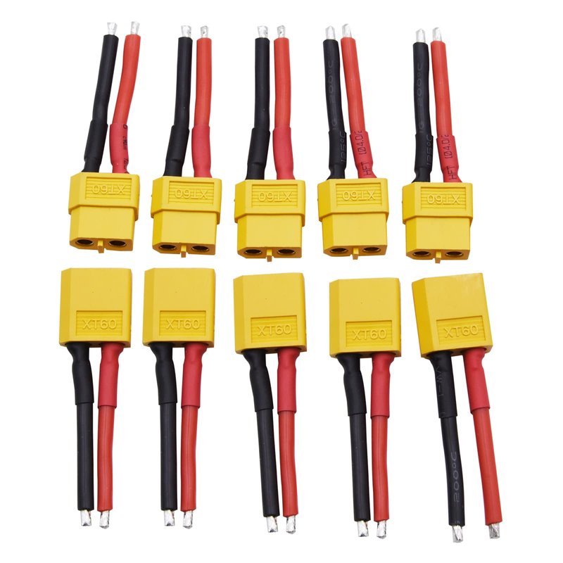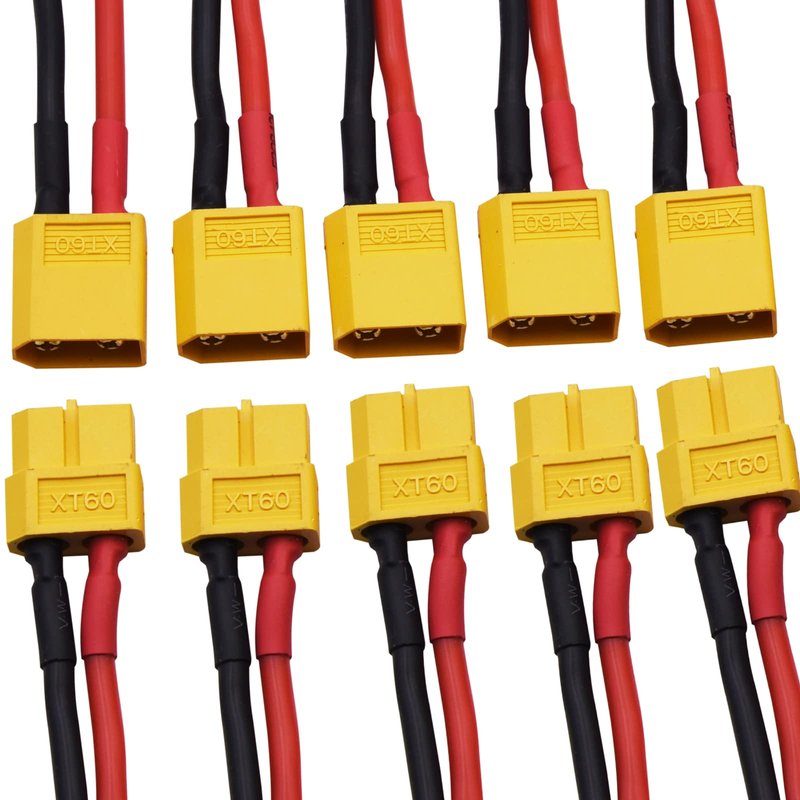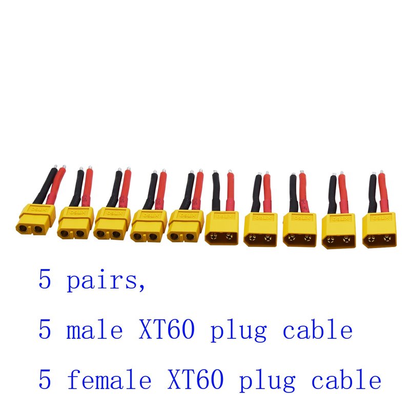 - Package contain 5 pairs female XT60 plug cable and 5 pairs male XT60 plug cable.