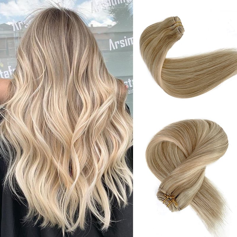Blonde Highlights Sew in Weft Hair Extensions Human Hair Weave Bundles Bayalage Blonde With Platinum Blonde Sew in Hair Extensions Brazilian Remy Hman Hair 12inch 80g Weft Bundles for Women