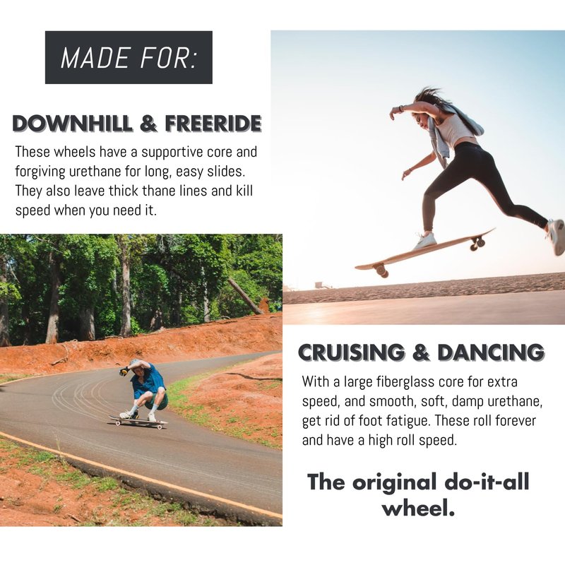 - 🍊 EASY TO SLIDE, BUT STILL GRIPPY - This wheel was designed to be to easy to slide, but provide grip where you need it. These leave thane lines everywhere, and kill speed only when you need them to.