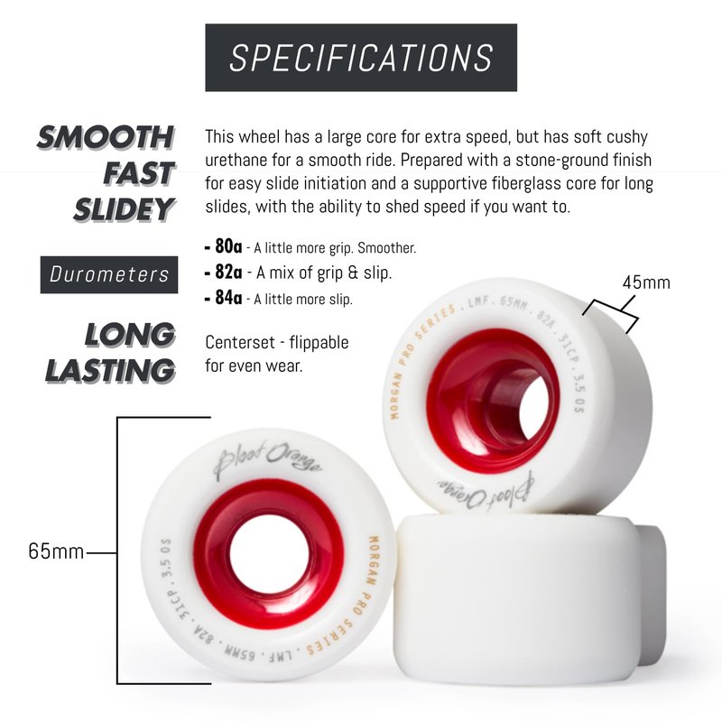- 🍊 3 DUROMETERS - 80a provides the most grip and the smoothest ride. 82a is the best middle of the road. 84a is the fastest and slides the easiest.