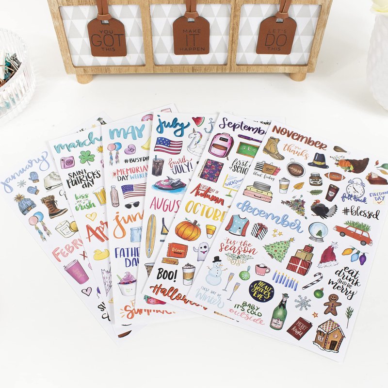- One sheet covers 2 months of stickers! One pack covers a full year of holiday decorating!