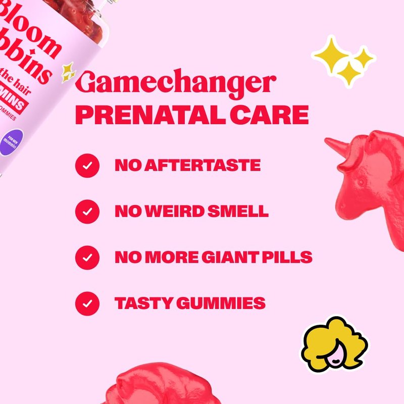 Bloom Robbins Hair Gummy Prenatal Vitamins for Women Pregnancy with Vitamin B6 - Pre Natal Multivitamin - 60 Prenatal Gummies - Hair Gummies for Women with Folic Acid (3Pack)