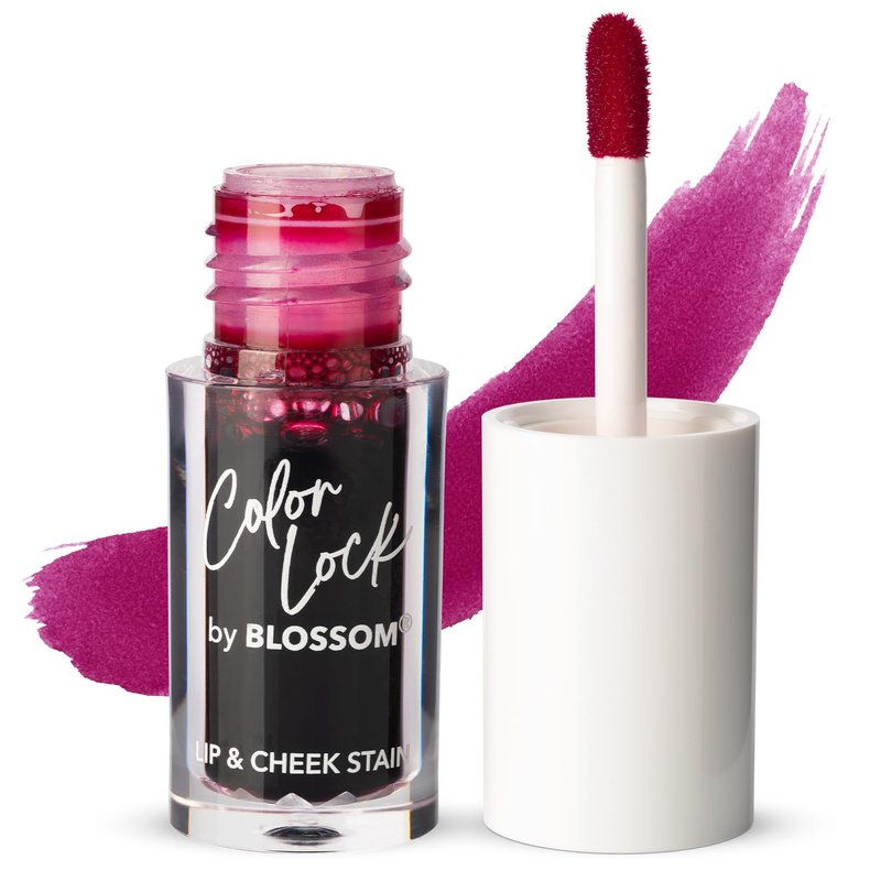 Blossom Color Lock Hydrating Longlasting Lip Stain and Tint for Lips & Cheek, Buildable, Non Drying, Smudgeproof + Transfer Proof, Made in USA with Doe Foot Applicator, 0.14 fl oz/4ml, Wine Stained