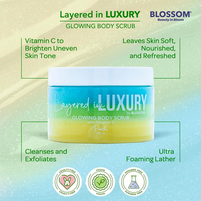 - LAYERED IN LUXURY BATH CARE: Blossom introduces their new line of luxury bath products with key ingredients in 3 heavenly scents (Peach, Coconut and Vanilla) to elevate your scents and give you that spa-like experience at home