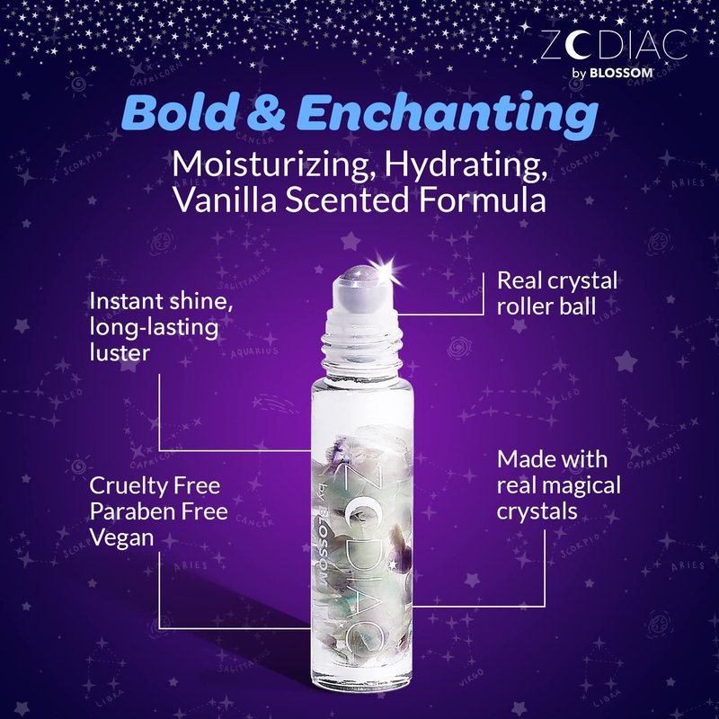 Blossom Zodiac Sign Vanilla Scented Moisturizing Roll-On Lip Gloss with Crystals, Made in USA, 0.20 fl. oz./5.9ml, Virgo