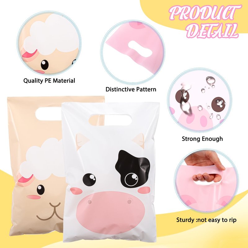 - Proper Size: these farm birthday party treat bags measure about 6.7 x 9.8 inches/ 17 x 25 cm, compact and portable, suitable for small gifts, candies, biscuits, and so on, come with die cut handle for easy to carry, will not take up too much space, providing much convenience for your party