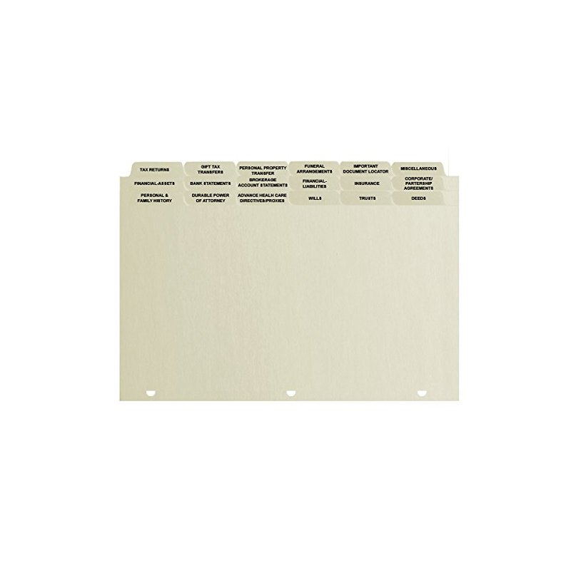 - 18 position estate tabs (listed in description below)