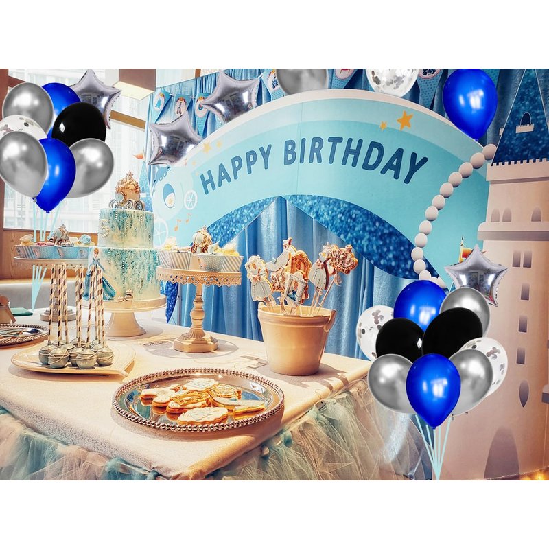 - 【After Sales Service】 Any problems about the Blue black sliver balloons, Please feel free contact us, we will help you solve in 24 hours.