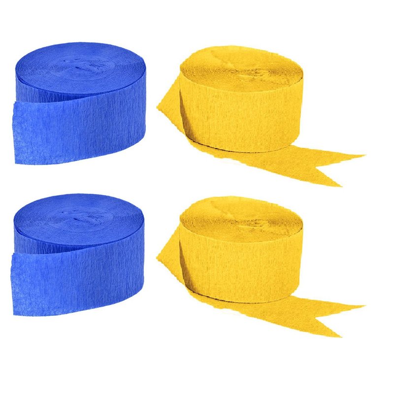 Blue and Gold Yellow Crepe Paper Streamers, 4 Rolls Total, Made in USA