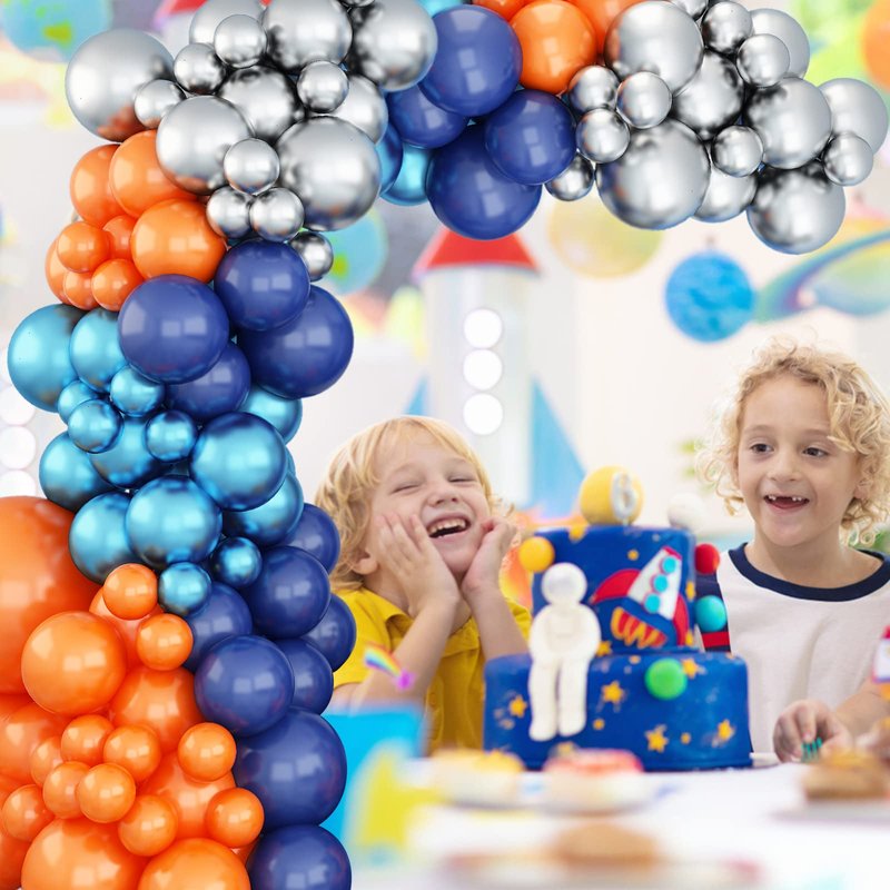Blue and Orange Balloon Garland Arch for Space Party Supplie: