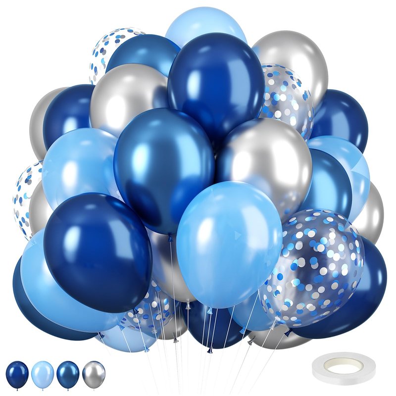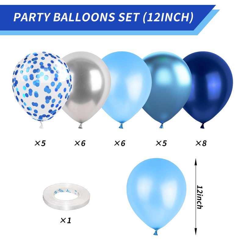 - 🎈12 Inch navy blue and silver balloons: Package content includes 6 pcs metallic silver balloons, 6 pcs metallic navy blue balloons, 5 pcs confetti blue silver balloons, 8 pcs navy balloons,6 pcs blue balloons, a balloon ribbon.The perfect color combination meets all your party imagination.