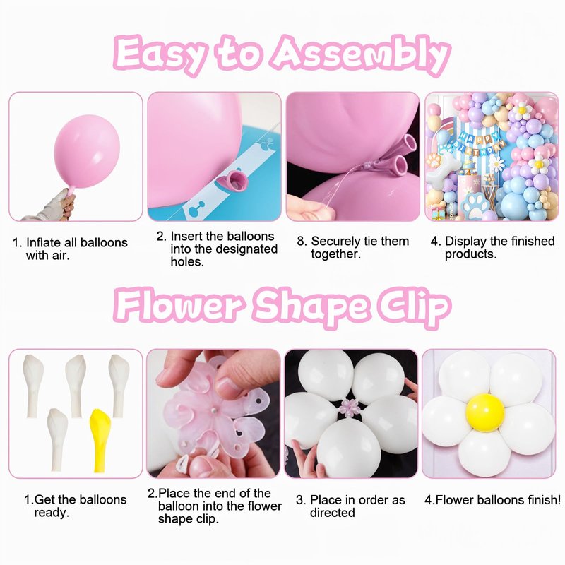 - 【Easy Assembly & DIY Fun】Creating your own birthday balloon arch has never been easier! The kit comes with a balloon arch strip, fishing line, and balloon dispense to help you assemble your garland. Simply inflate the balloons (85% full) and attach them to the arch strip for a stunning display. This DIY project is great for kids and adults alike, adding a personal touch to any celebration