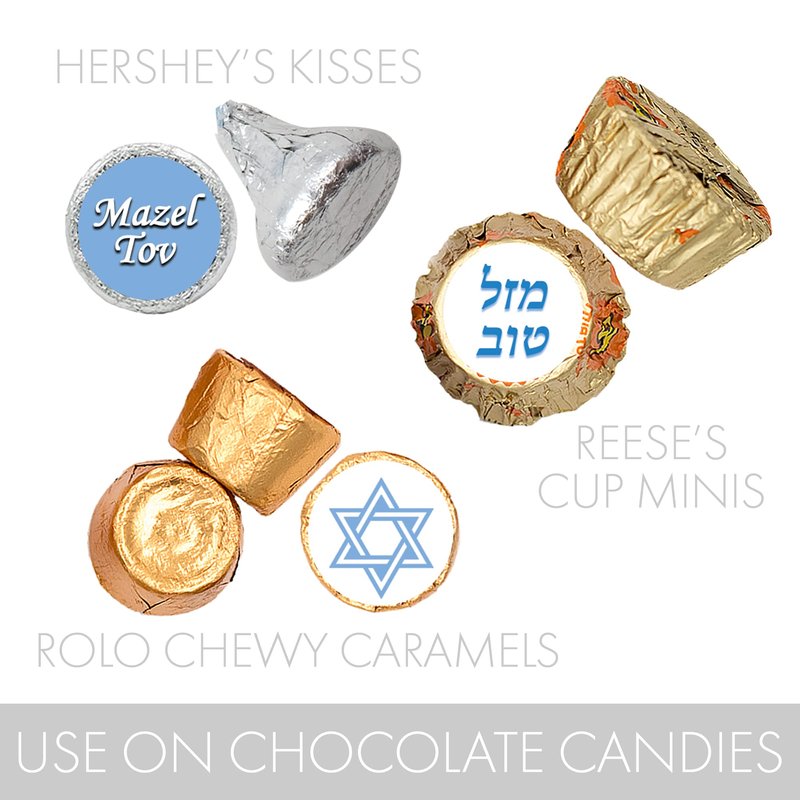 - EASY TO USE: Just peel and stick to Kosher candies for blue Bar Mitzvah party favors.
