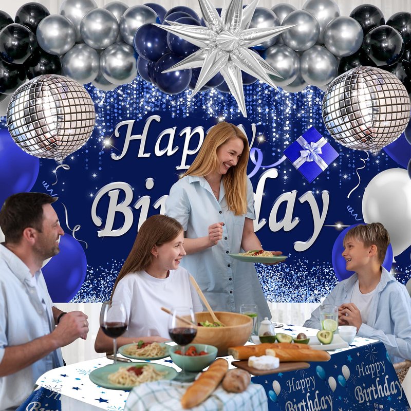 - 🎉Navy Blue and Silver Birthday Decorations: Do you want to create a special birthday party? Do you want to leave an impressive party memory? The theme of silver & blue & black disco birthday decorations is your best choice: the blue and silver are fashionable and elegant colors that will give you a lovely party. The party supplies suit for first, 13th, 15th, 16th, 18th, 21st, 30th,40th, 45th, 50th, 60th etc birthday party.
