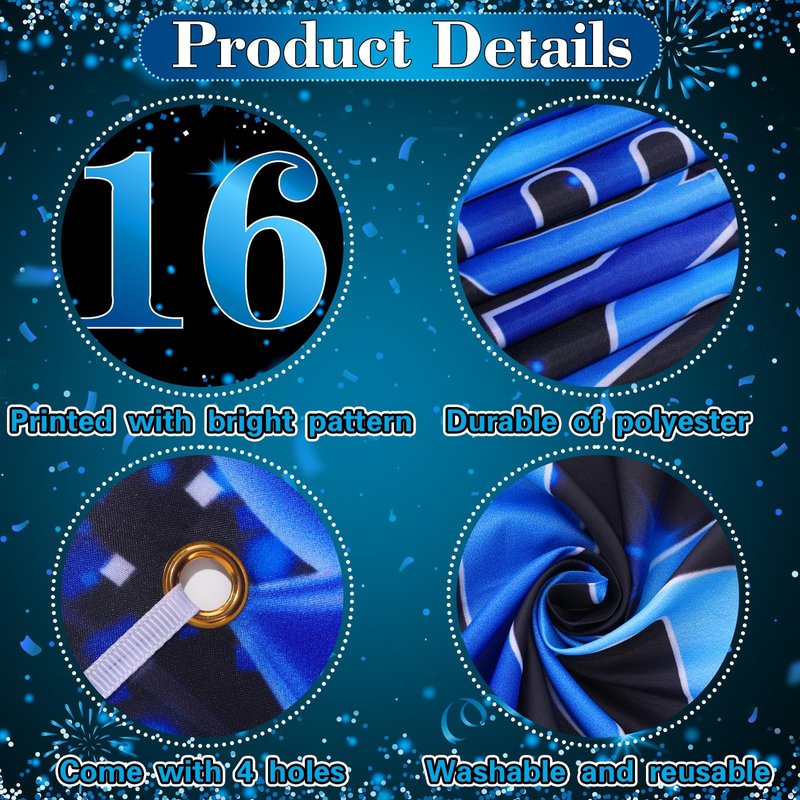 - Unique Design:The 16th birthday banner is printed with "Happy 16th Birthday", "Balloons", "Five-pointed Stars", "Colored Lights", highlighting the theme and creating a unique birthday party. There are four colors on the 16th birthday balloons, including black, dark blue, light blue and sequins, and the balloons are also printed with "Happy 16th Birthday".