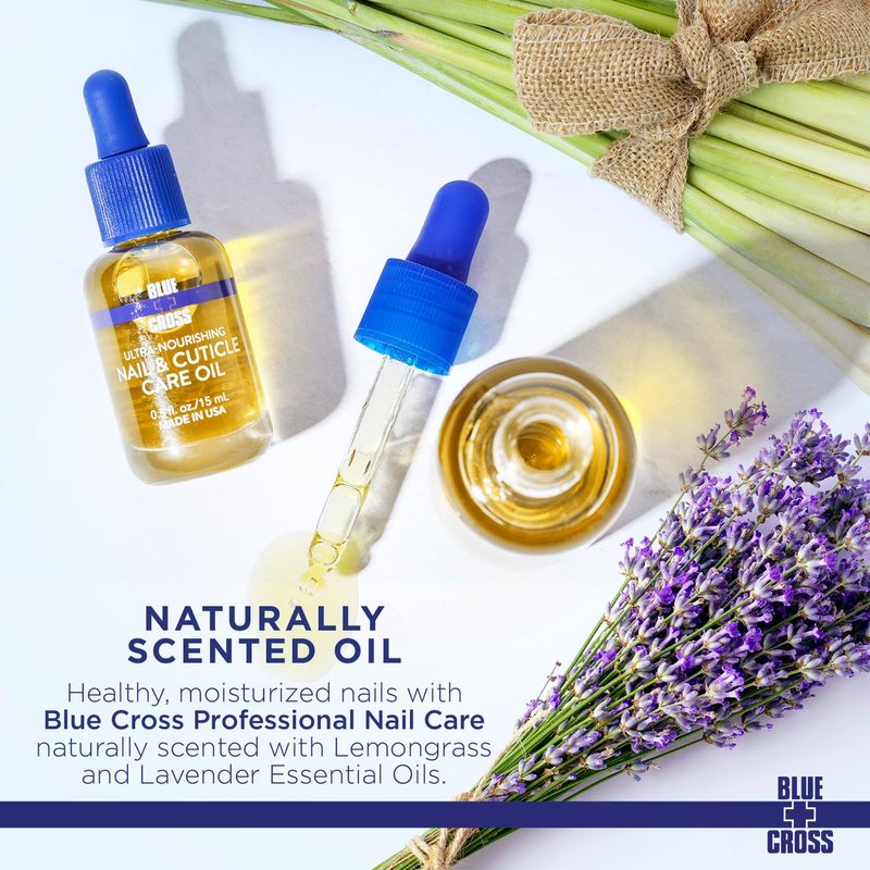 Blue Cross Professional Nail Care, All Natural Mineral Oil Free, Ultra-Nourishing, Hydrating, Moisturizing Nail & Cuticle Oil, Lemongrass + Lavender Scented Essential Oils, Made in USA, 0.5 fl oz/15mL