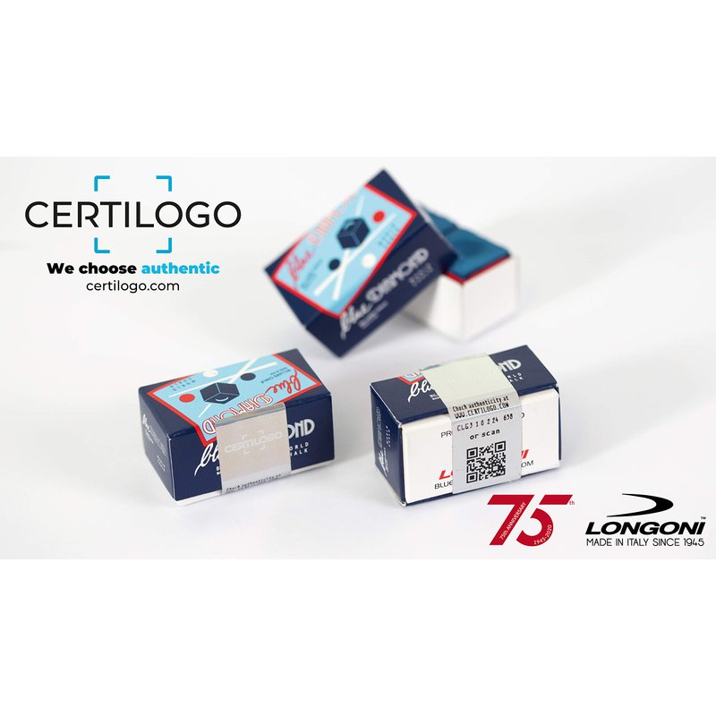 Blue Diamond Chalk with Certilogo protection, 100% authentic. The best and most required billiard chalk worldwide. Premium Quality chalk - Sticks well to any tip -Stays on tip longer - Spreads evenly on the tip - Allows you to get more English on the cue ball - Less miscues - Improves your performance- 2 cubes of chalk per box - Certilogo code on each box - Box net weight: 1.2 oz (35 grams) - Box gross weight: 1.6 oz (43 grams) - Box size: 2.1" x 1.2" x 1" (5,3 x 3 x 2,5 cm) - Chalk color: Blue - Made in USA - Price is for 2 pcs of chalk (1 box).