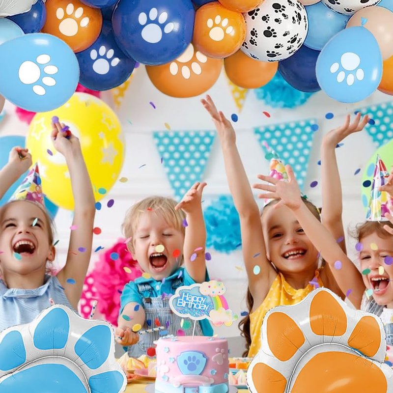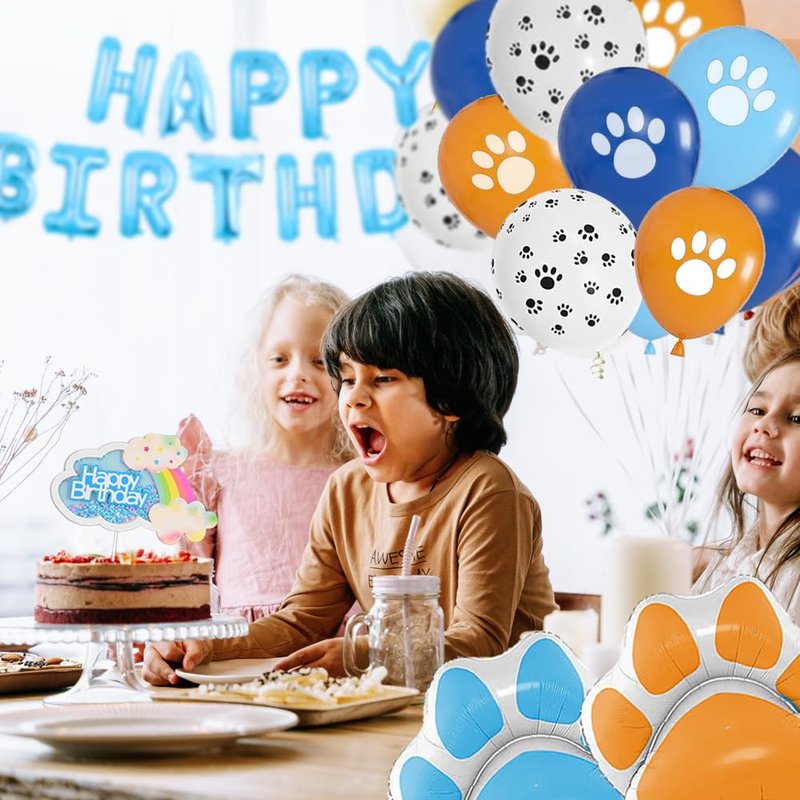 - 【Package Included】Dress up your Blue Dog birthday party decorations or Blue Dog birthday party with this Blue Dog Paw balloon. Include 1 Blue and Orange Dog Paw Foil Balloons 24 Dog Paw Print Latex Balloon 1 Blue Happy Birthday Cake Topper 1 Blue Foil Balloons Banner.