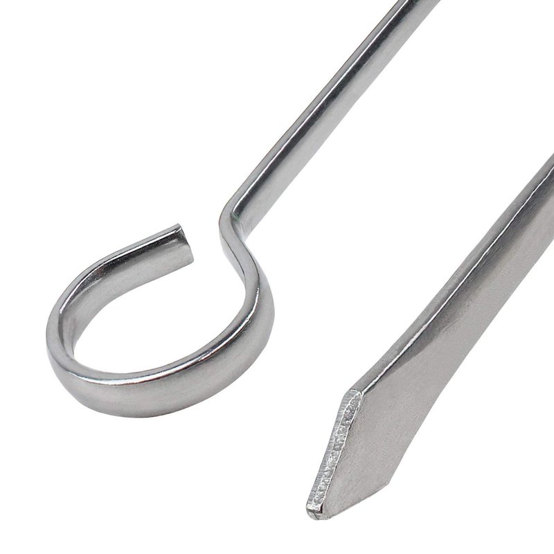 - Ring Top Handle - Oval blade securely holds food in one position as you use the ring handle for easy maneuvering of food while its being grilled. Easily hang your skewers for grilling with the ring top handle