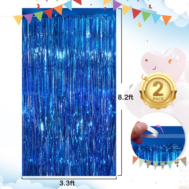 Blue Fringe Curtain Party Streamers 2Pack 3.3x8.3 Ft Foil Fringe Backdrop Curtains for Birthday Wedding Bridal Baby Shower Holiday Tinsel Streamers Blue Christmas Party Decorations Door Streamer