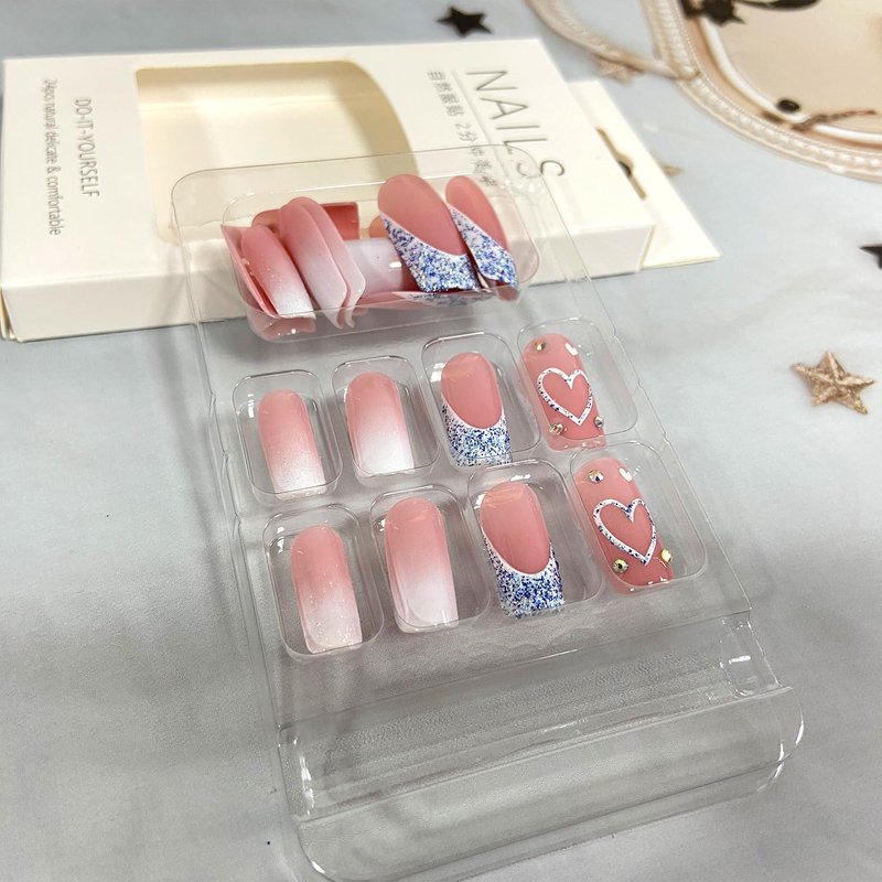 Remove the glue sticker and keep the fake nail tip for next time use.