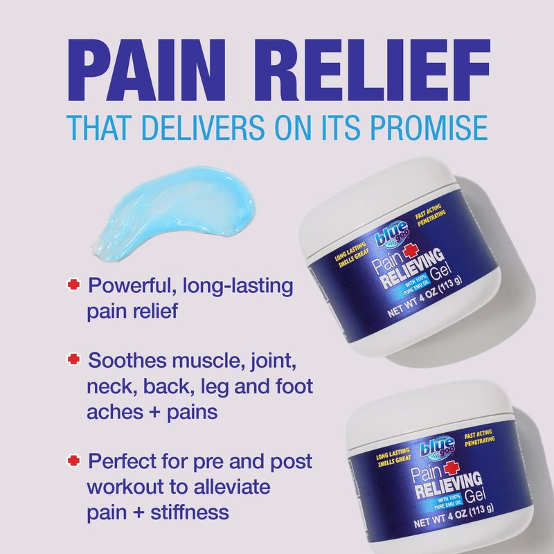 Blue Goo Pain Relieving Gel – for Back, Neck, Muscle and Joint Pain, Fast-Acting Cooling and Soothing Relief with 100% Pure Emu Oil, 4 oz (2 Pack)