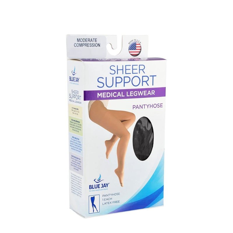 Blue Jay An Elite Healthcare Brand Sheer Support Legwear - Pantyhose with Firm Compression Support - Graduated Support Hose for Unisex - Light Weight, Black, Tall Closed Toe, 15-20 mmHg